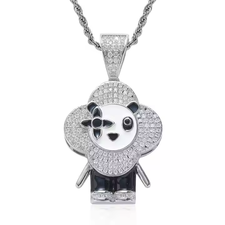 จี้แพนด้าขนาด2นิ้วประดับเพชรธรรมชาติทรงกลมสีเงินชุบเครื่องประดับรูปสัตว์น่ารักสำหรับความเรียบง่ายที่โดดเด่น