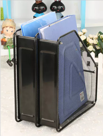 กล่องจัดระเบียบเอกสารแบบตาข่ายลวดสีดำ 2 ชั้น - เหมาะสำหรับจัดระเบียบเอกสารสำนักงานและโรงเรียน