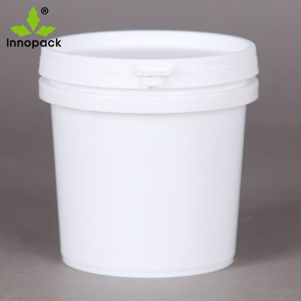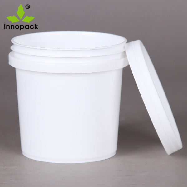 ถังพลาสติกสีขาวขนาด 2 ลิตร พร้อมฝาและหูหิ้ว บรรจุภัณฑ์สีที่สะดวกสบาย