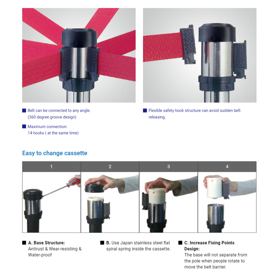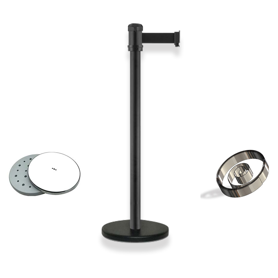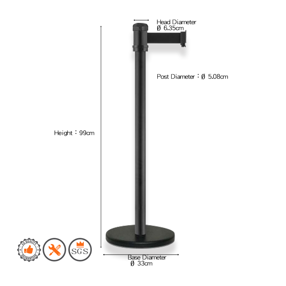 สายพานกั้นสีดำแบบยืดหดได้ยาว2เมตร RS-A2BK3เสาควบคุมการจราจรสำหรับการจัดการฝูงชน