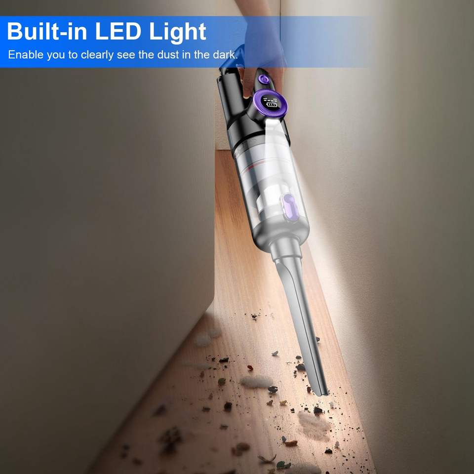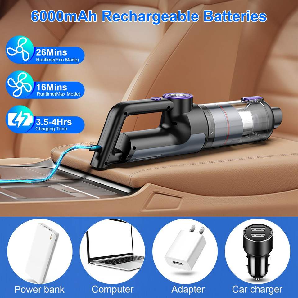 เครื่องดูดฝุ่นแบบมือถือ 2 โหมด 3-in-1 ไร้สายสำหรับรถยนต์ พร้อมแรงดูด 15000PA ชาร์จซ้ำได้ หน้าจอดิจิตอล พร้อมไส้กรองแบบล้างทำความสะอาดได้ 2 ชิ้น