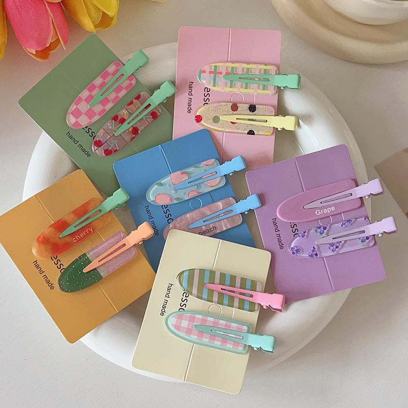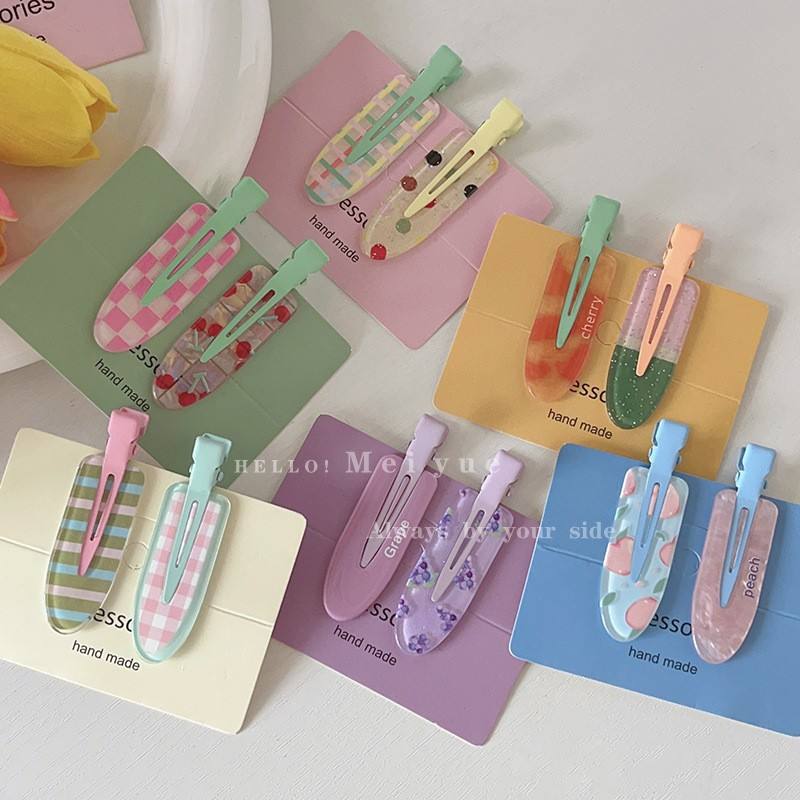 กิ๊บติดผมแบบเกาหลี 2 ชิ้น/ชุด สีส้มเกรปฟรุต แบบไร้รอยต่อ สำหรับเด็กผู้หญิง น่ารัก สไตล์น้ำผลไม้ ไม่ทำให้ผมเป็นรอย ใช้สำหรับแต่งหน้า