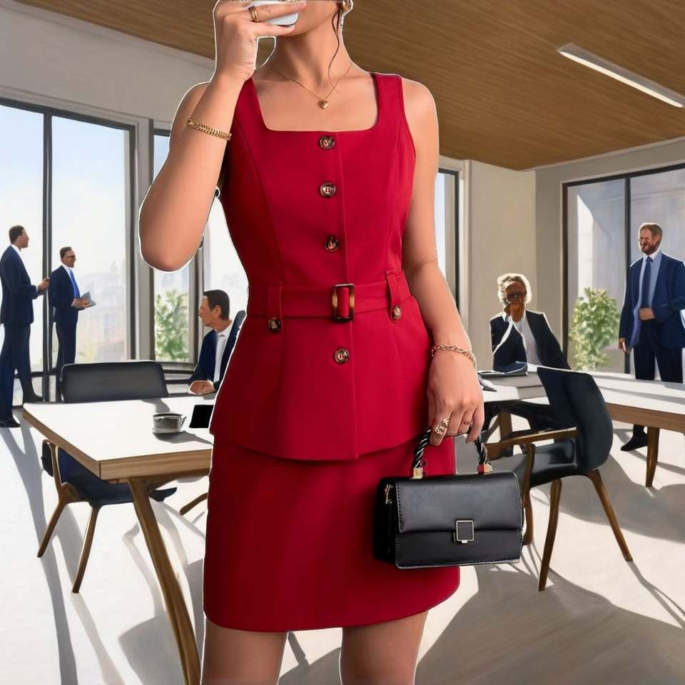 เซ็ตเสื้อไม่มีแขนและกระโปรงสั้นสำหรับผู้หญิง2ชิ้นสูทสำนักงานเอวสูงแฟชั่นฤดูร้อนส่งตรงจากโรงงานกวางโจว