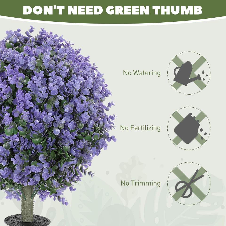 ชุด 2 ชิ้น ต้นยูคาลิปตัสประดิษฐ์ทรงกลม ขนาด 1.3 ฟุต ทนทานต่อรังสียูวี พร้อมเสาปักดิน สำหรับตกแต่งภายในและภายนอกอาคาร ต้นไม้ปลอมคุณภาพดี