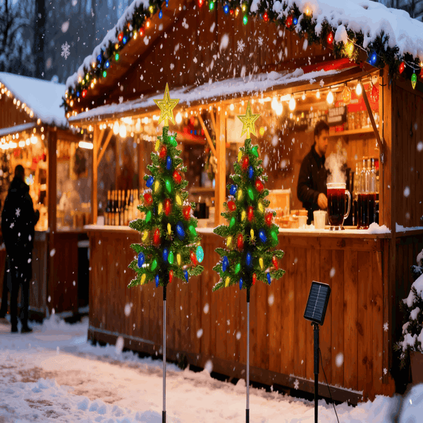 ไฟต้นคริสต์มาสพลังงานแสงอาทิตย์สำหรับภายนอกอาคาร ขนาด 37.4 นิ้ว แพ็คคู่ กันน้ำ IP44 100 LED 4 สี 8 โหมด สำหรับตกแต่งทางเดิน