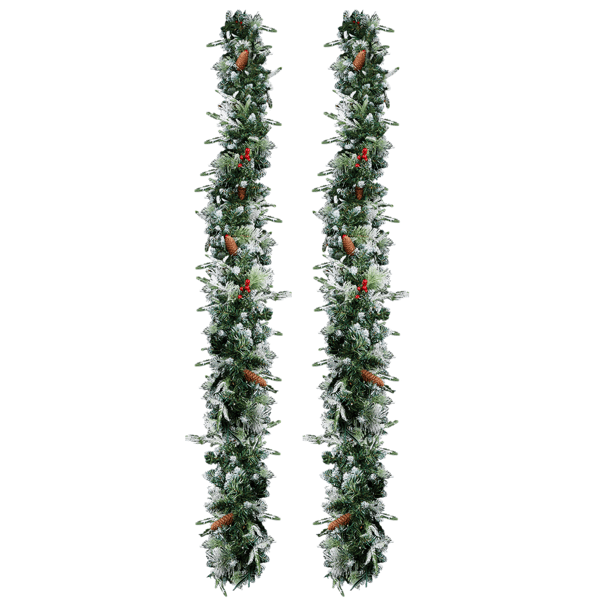 พวงมาลัยคริสต์มาสประดับหิมะเทียมพร้อมไฟ 200 ดวง ความยาว 9 ฟุต จำนวน 2 ชุด พร้อมไฟสีวอร์มไวท์ 440 จุด สีแดง ทำจากวัสดุสังเคราะห์