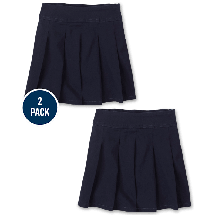 ชุดกระโปรงจีบผ้ายืด2แพ็คสำหรับเด็กผู้หญิงชุดเครื่องแบบนักเรียนผ้าโพลีเอสเตอร์สำหรับเด็กประถมและฤดูหนาว