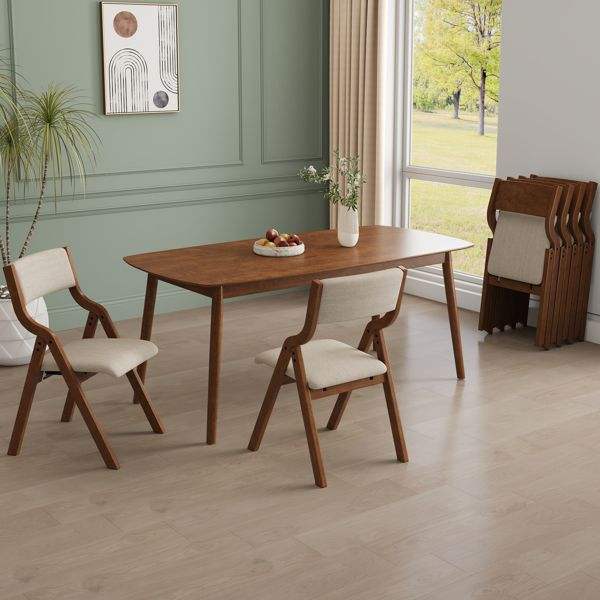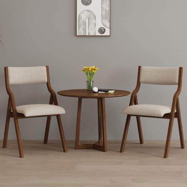 2-Pack Cream Taupe Walnut Upholstered Folding Dining Chairs Easy Carry No Assembly Required Space-Saving Design for Dining Room