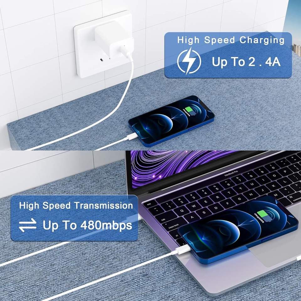 2 Pack Fast Charging Type C Wall Charger Block with 6+3ft iPhone Cable Fast Charging iPhone Charger