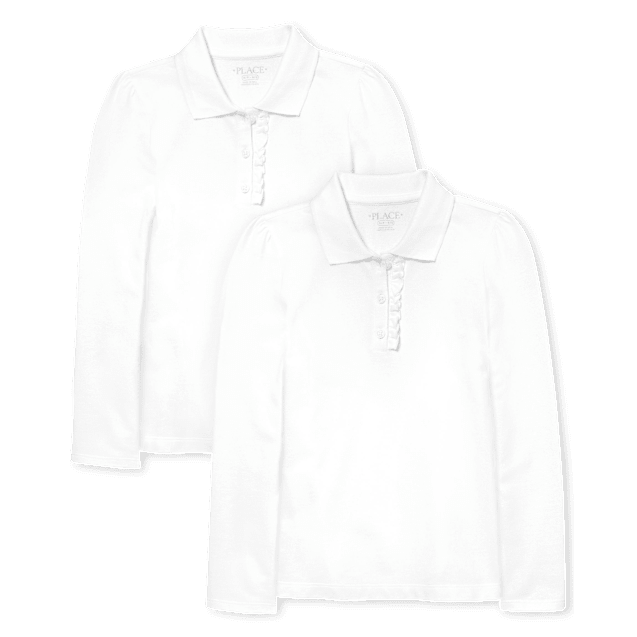 ชุดนักเรียนเสื้อโปโลผ้ายืดสีขาวนุ่มสำหรับเด็กผู้หญิง2แพ็คเครื่องแบบมีระบาย