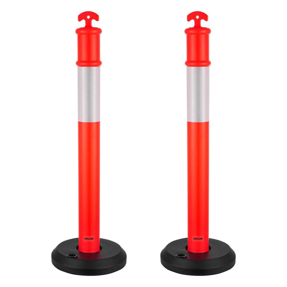 ชุดเสาจราจรแบบหนาพิเศษ 2 ชิ้น ขนาด 48 นิ้ว พร้อมฐานเติมน้ำได้ แถบสะท้อนแสง กรวยจราจร ผลิตภัณฑ์เตือนภัยเพื่อความปลอดภัยทางจราจร