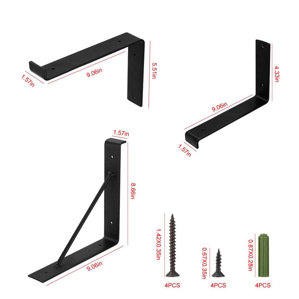 ชุดขายึดชั้นวางโลหะรูปตัว L แบบหนา 2 ชิ้น ติดผนัง พร้อมชุดสกรู ตัวเชื่อมต่อ และตัวรองรับชั้นวาง