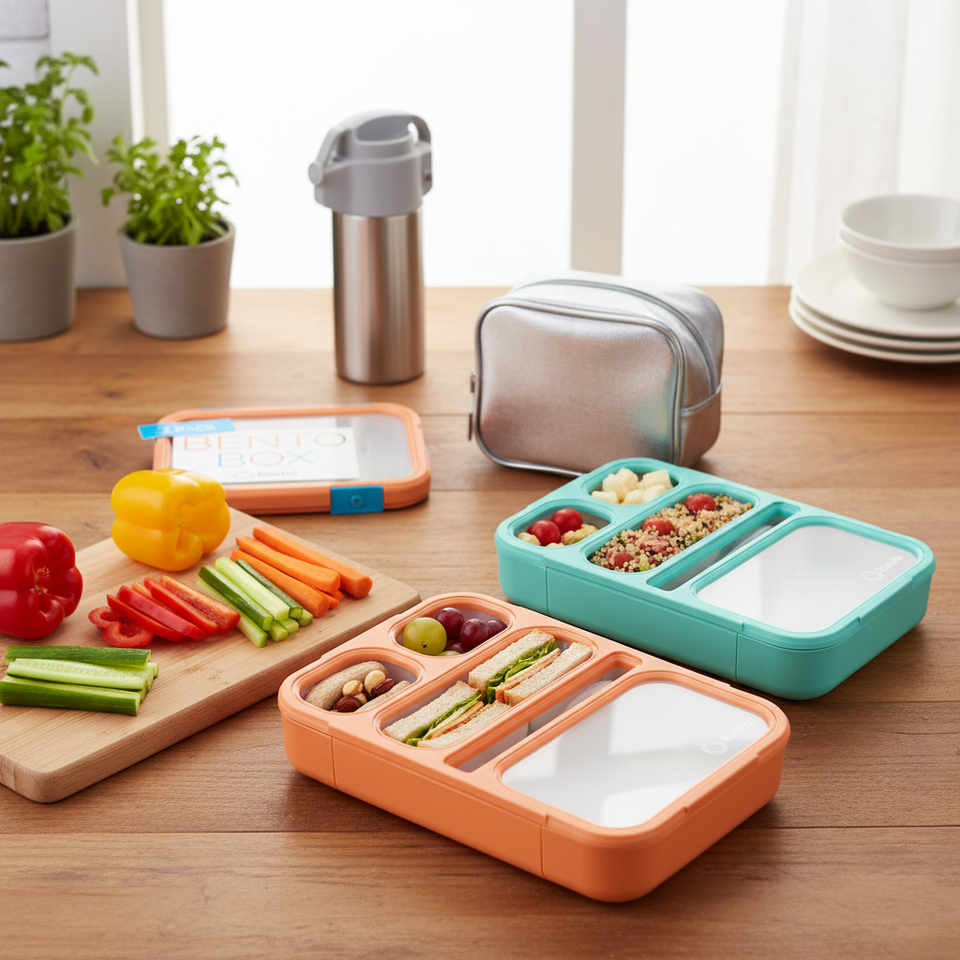 กล่องอาหารกลางวันสแตนเลสแบบใช้ซ้ำได้ 2 แพ็ค กล่องใส่ขนม 3 ช่อง กล่องใส่เครื่องปรุง 2 ช่อง ฝาปิดสำหรับเก็บอาหาร