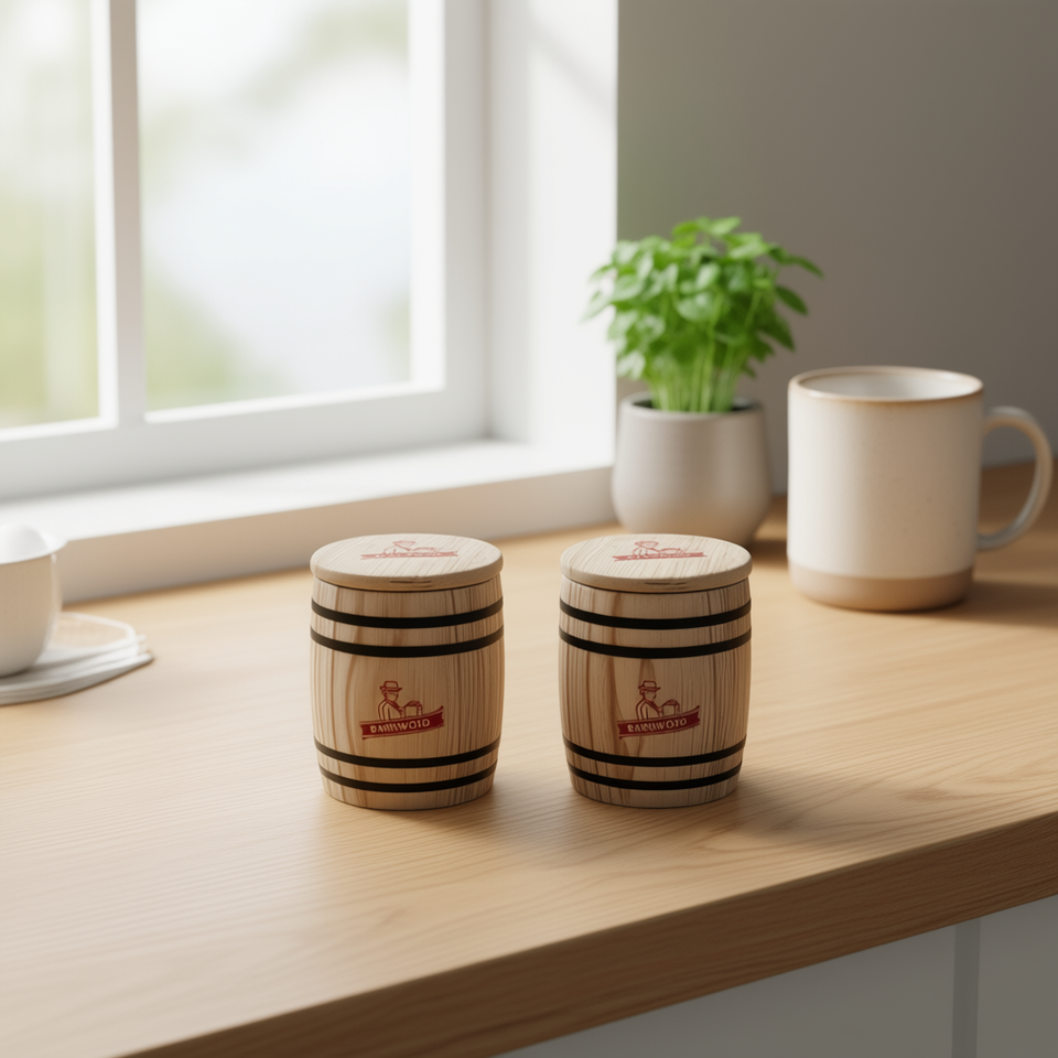 กระปุกไม้ขนาดเล็ก Barnwood ภาชนะเก็บของไม้เนื้อแข็ง ปิดสนิท สำหรับจัดระเบียบเคาน์เตอร์ครัว แพ็ค 2 ชิ้น