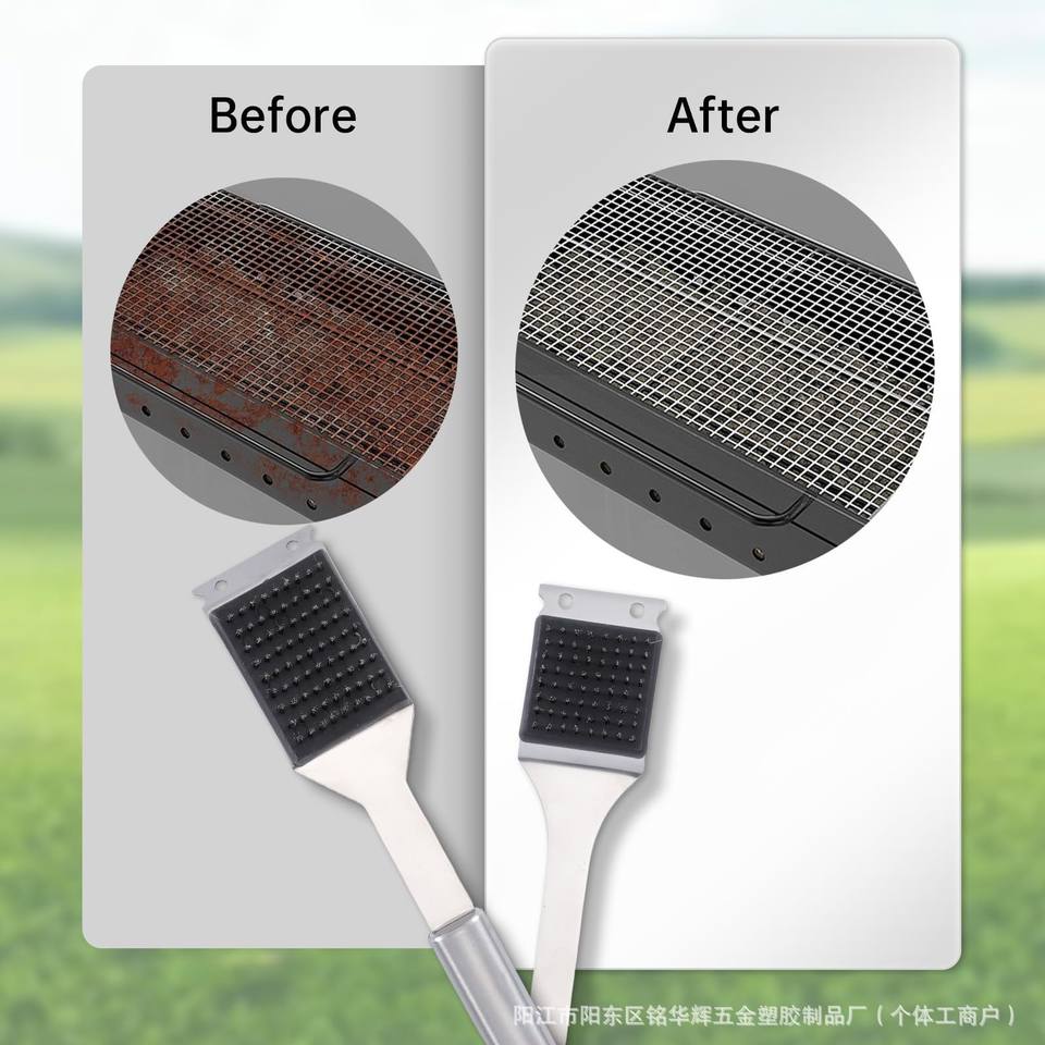 ชุดแปรงและที่ขูดทำความสะอาดเตาบาร์บีคิวสแตนเลส 2 ชิ้น ทนความร้อน ไม่ติดกระทะ สำหรับใช้งานกลางแจ้ง คุณภาพพรีเมียม