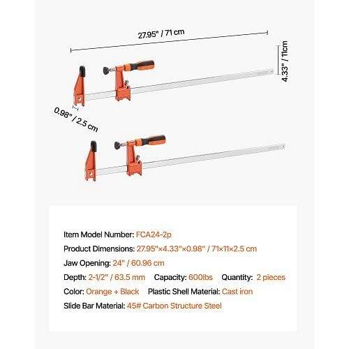 2-Pack W2B Quick Release Woodworking Clamps 24-inch Opening Lockable F Clamp Design Cast Iron with Steel Plastic Components