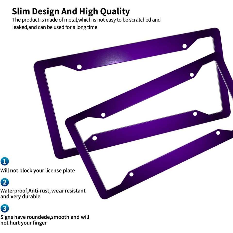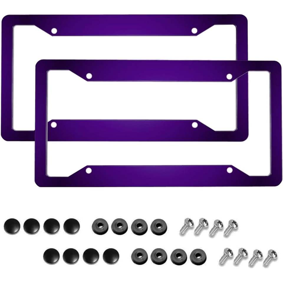 กรอบป้ายทะเบียนรถยนต์โลหะอะลูมิเนียมสีม่วง 2 ชิ้น พร้อมฝาครอบ ป้องกันสภาพอากาศ อุปกรณ์ตกแต่งรถยนต์ รุ่น 202511070022 ผลิตในประเทศจีน