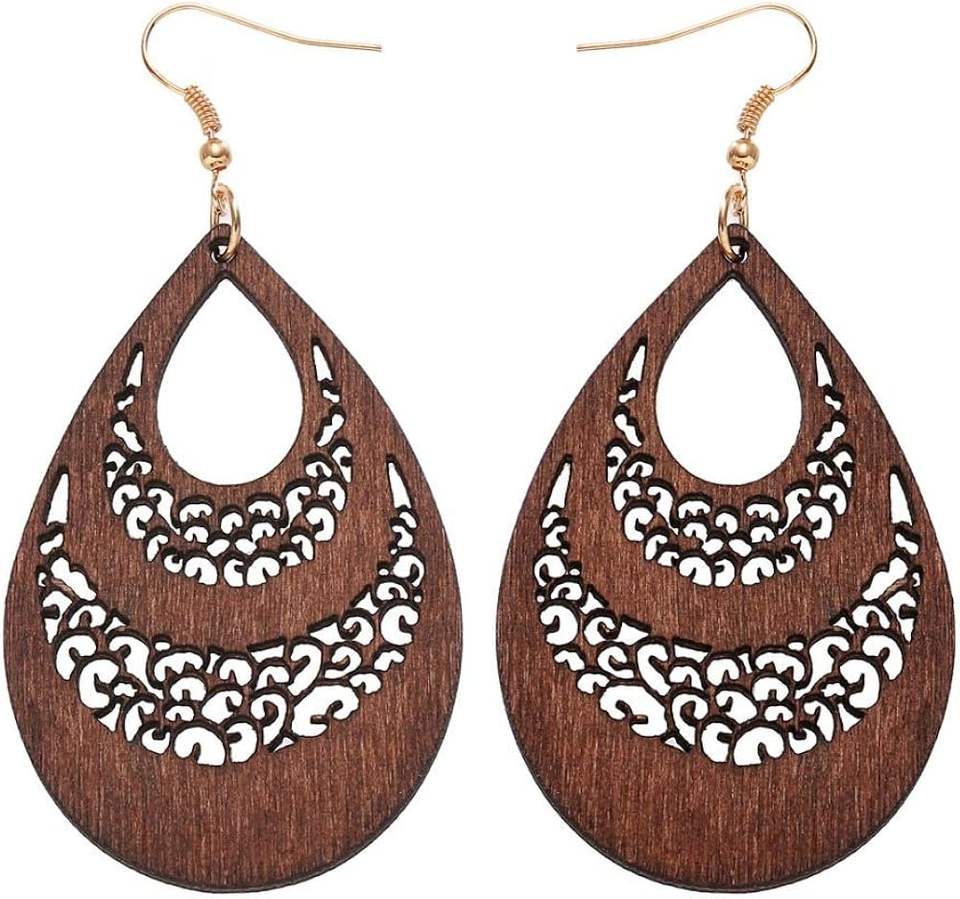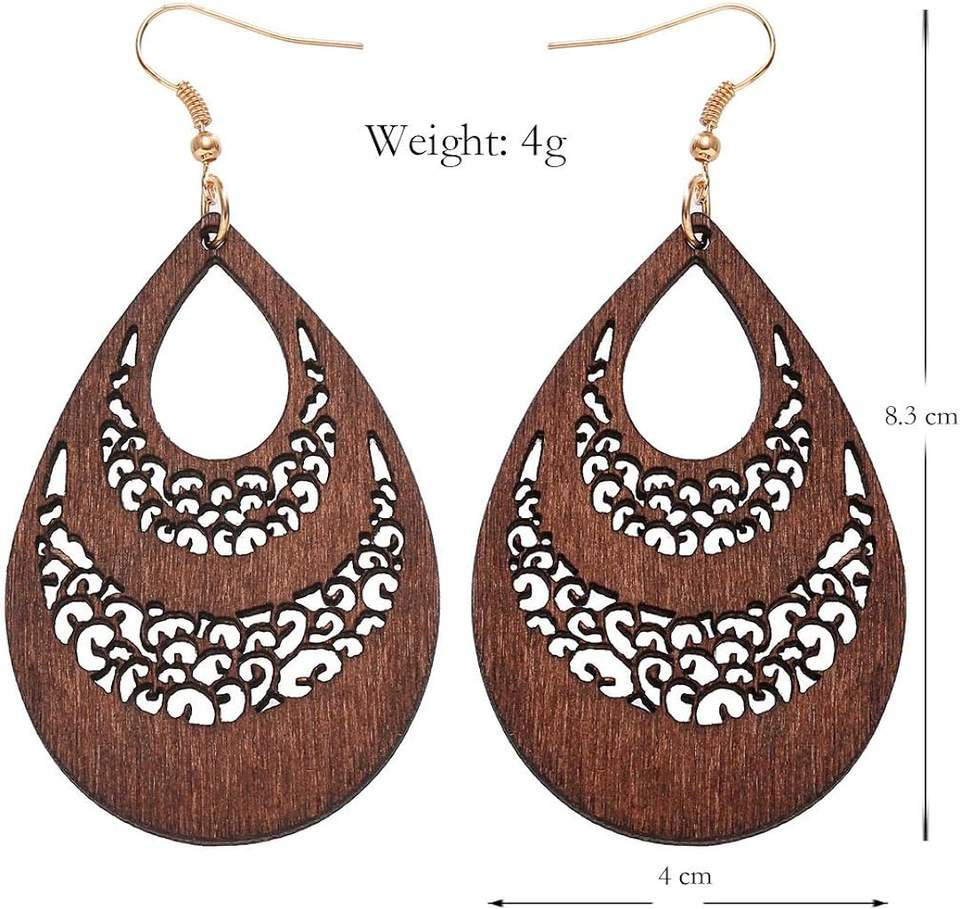 ต่างหูห้อยสไตล์โบฮีเมียนสำหรับผู้หญิง2คู่ทำจากไม้ที่มีน้ำหนักเบาทำด้วยมือ