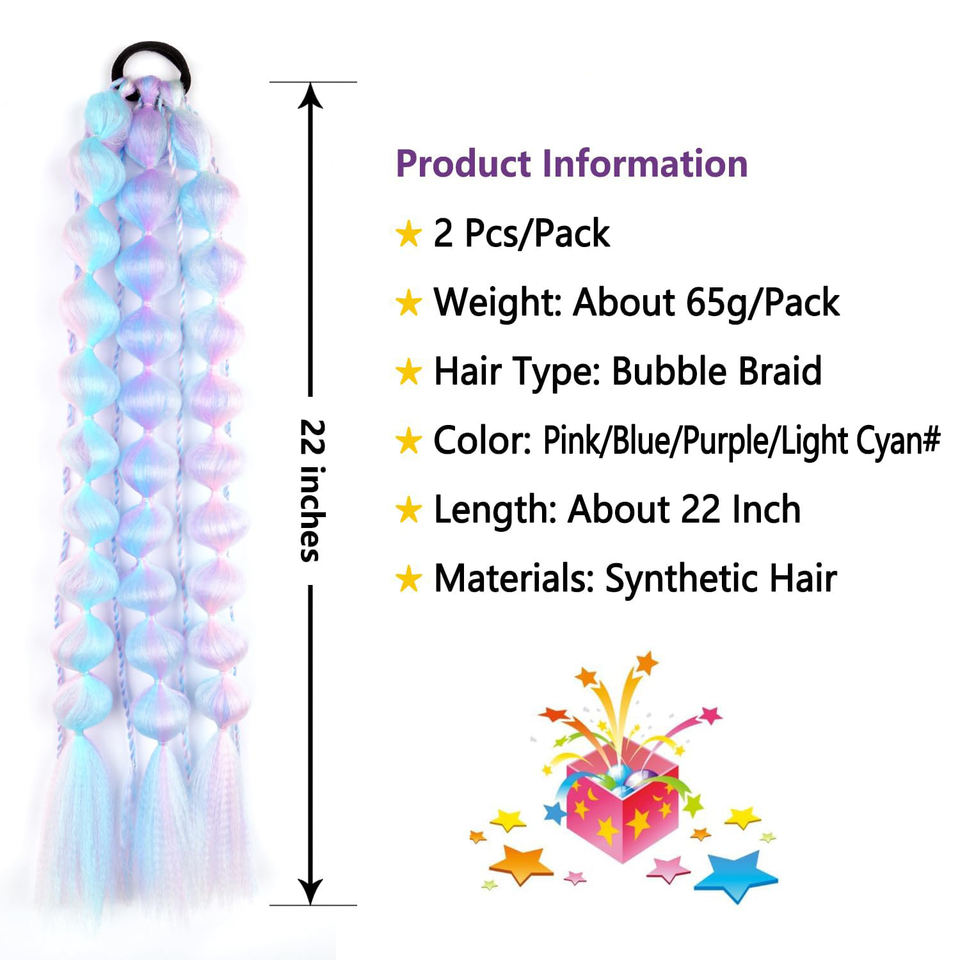 ผมปลอมแบบหางม้า 2 ชิ้น ขนาด 22 นิ้ว น้ำหนักเบา ผสมเส้นใย 4 เส้น ถักเปียหลากสี พร้อมยางรัดผม สำหรับวันผมสุดเก๋