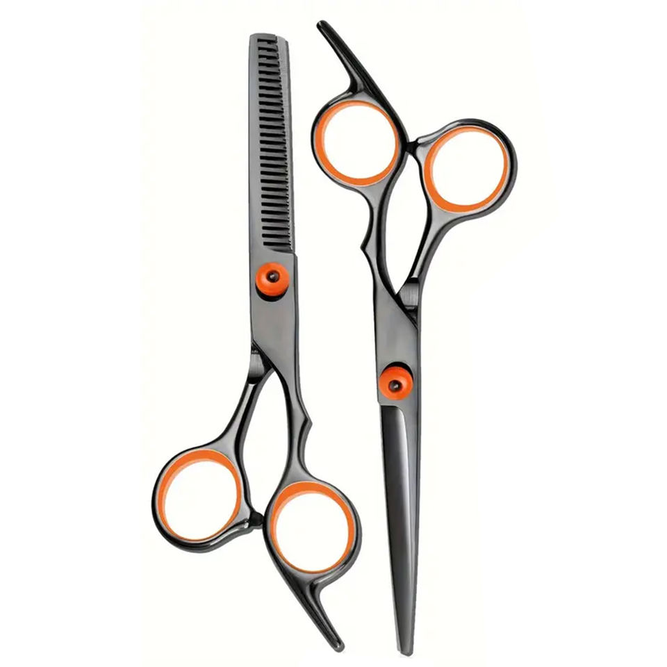 ชุดกรรไกรตัดผม2ชิ้นสำหรับช่างตัดผมชุดช่างตัดผมสวยเคลือบสีดำพร้อมที่วางนิ้วมือ