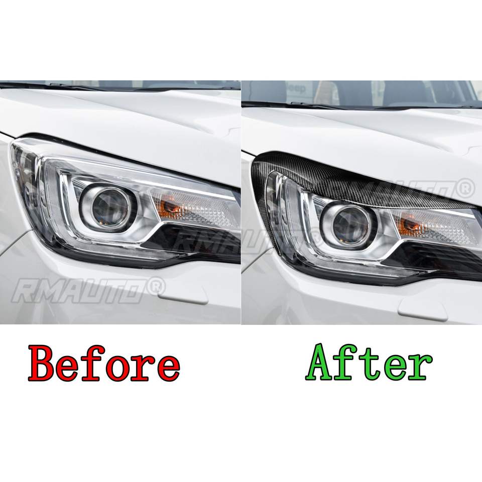 2 ชิ้นคาร์บอนไฟเบอร์ไฟหน้ารถคิ้วเปลือกตาสำหรับซูบารุ ฟอเรสเตอร์ 2013 2014 2015 2016 2017 2018