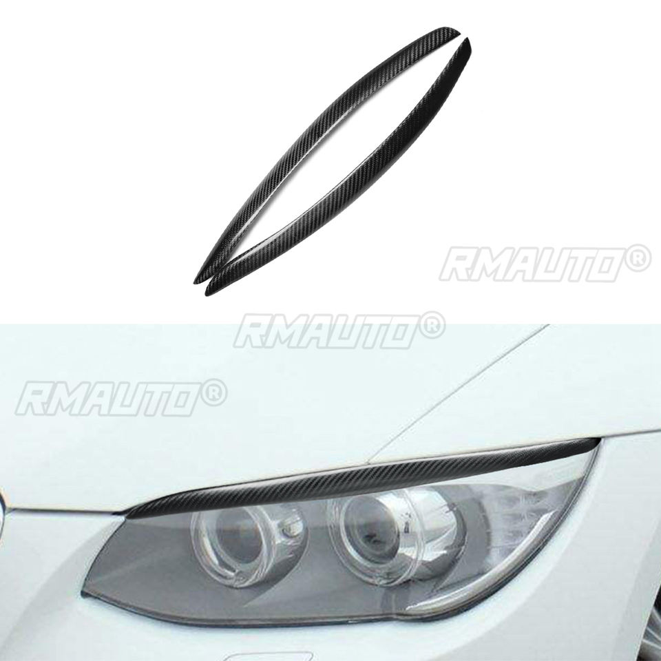 2 Pcs Carbon Fiber Headlights Eyebrow Eyelids Trim Cover for BMW E92 E93 3 Series Coupe E92 M3 Coupe 2006-2012