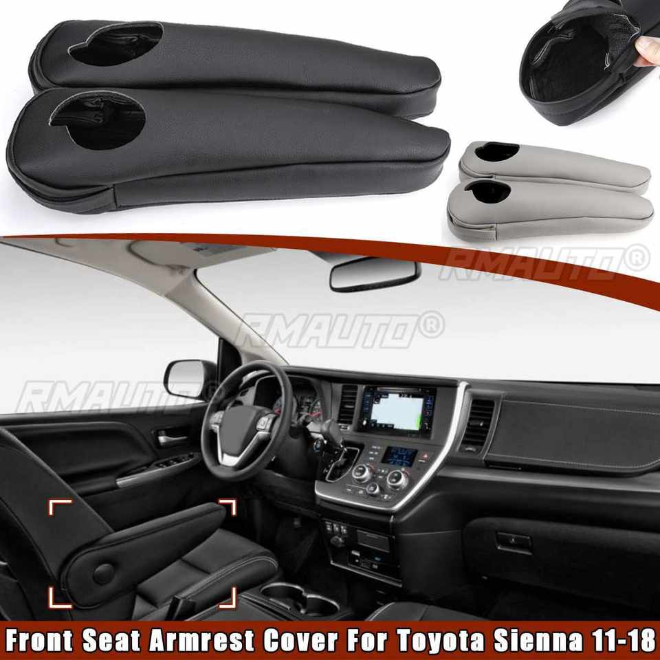 2 ชิ้นหนังสังเคราะห์ฝาครอบที่วางแขนเบาะหน้าสำหรับโตโยต้าเซียนน่า 2011 2012 2013 2014 2015 2016 2017 2018 สีดำสีเทา