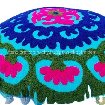โซฟาโบฮีเมียนโบฮีเมียน2ชิ้นสำหรับตกแต่งบ้านและโรงแรมหมอนอิงทรงกลมปักลาย uzbek suzani ทำด้วยมือผ้าฝ้าย100%