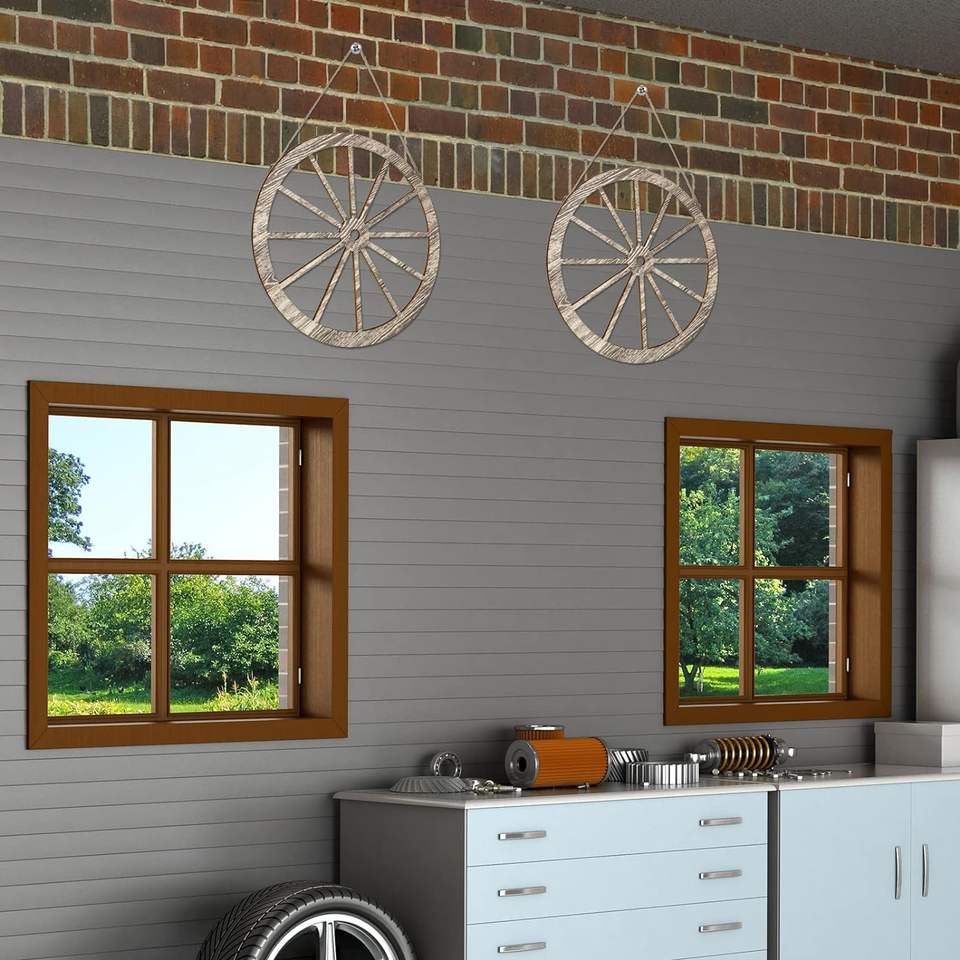 ล้อรถไม้ขัดเงาสีไม้ธรรมชาติ 2 ชิ้น สำหรับตกแต่งงานปาร์ตี้คาวบอยตะวันตก ตกแต่งบ้าน บาร์ และโรงรถ