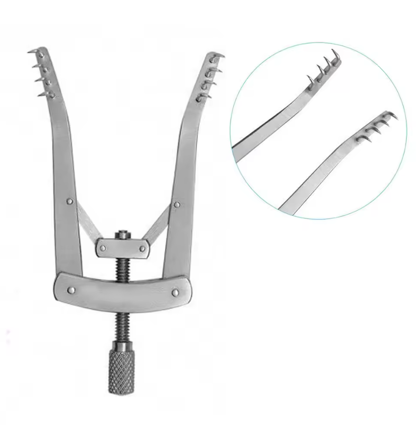 เครื่องดึงกลับสเตนเลสสำหรับการผ่าตัด2ชิ้นความกว้าง7ซม. ความลึก7.5ซม. 8ง่ามลึก32ซม.