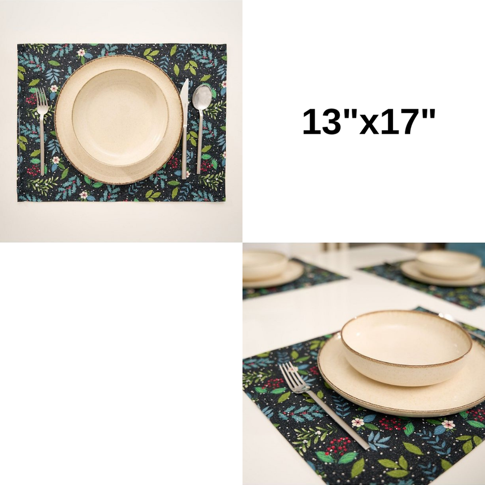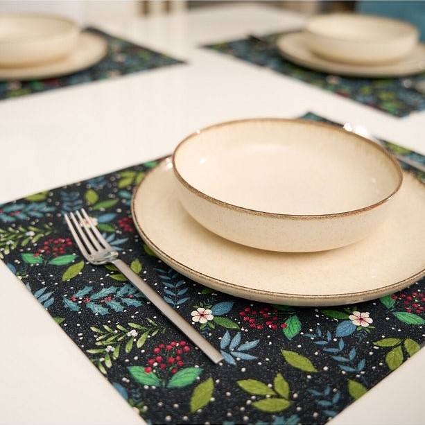 ชุดที่รองจานลายดอกไม้ทำจากผ้าฝ้าย2ชิ้นเสื่อรองจานตกแต่งโต๊ะรับประทานอาหารขนาด35x45ซม. ทนทานซักได้อุปกรณ์เสริมสำหรับโต๊ะอาหาร