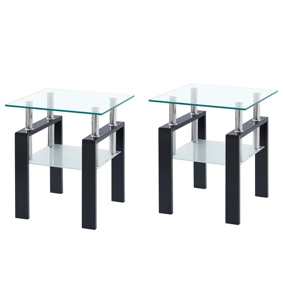 ชุดโต๊ะกาแฟกระจกใส 2 ชิ้น โต๊ะข้างสำหรับห้องนั่งเล่นหรือโต๊ะวางโซฟา