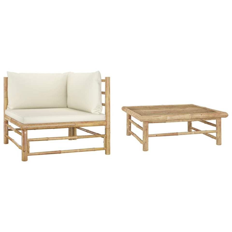 2-Piece Cream White Bamboo Patio Lounge Set with Cushions for Garden Relaxation