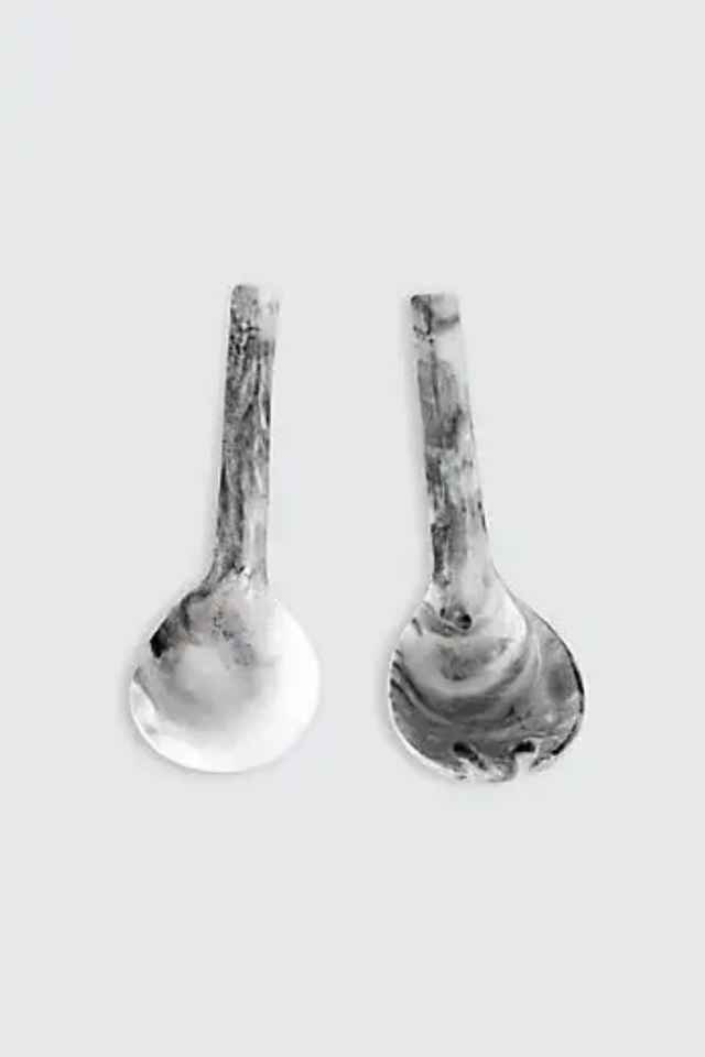 ชุดอุปกรณ์เสิร์ฟสลัดเรซิ่นตกแต่ง 2 ชิ้น ช้อนเสิร์ฟแบบเป็นมิตรกับสิ่งแวดล้อมพร้อมด้ามจับวัดปริมาณ ใช้กับเครื่องล้างจานได้