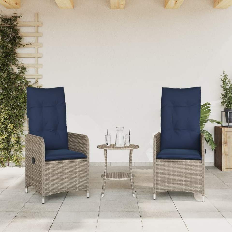 ชุดเก้าอี้ลานบ้านปรับเอนได้หวายโพลีสีเทา 2 ชิ้นพร้อมโต๊ะเฟอร์นิเจอร์กลางแจ้งที่ทนทาน