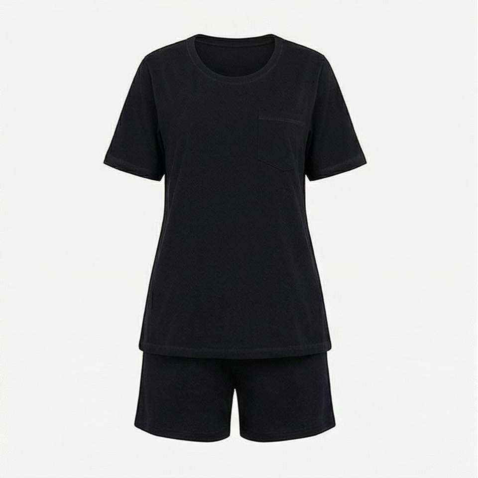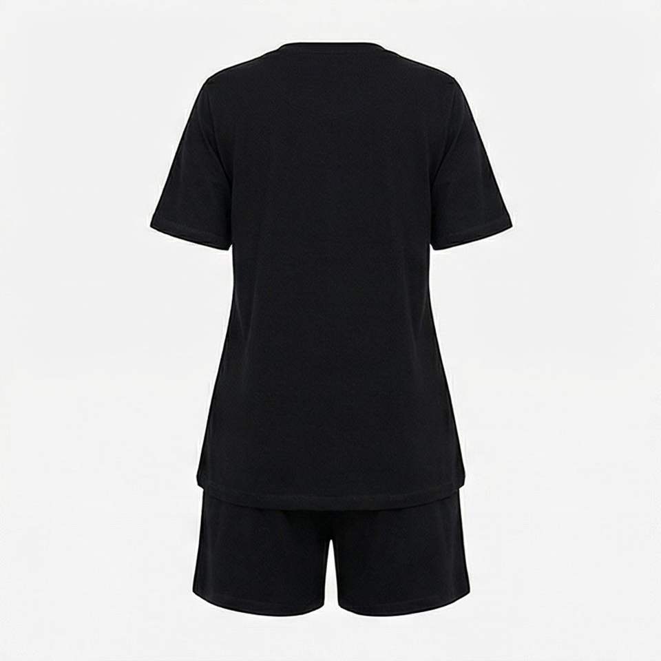 ชุดเซ็ตเสื้อยืดแขนสั้นและกางเกงขาสั้น 2 ชิ้น คุณภาพสูง สำหรับใส่ในบ้าน หรือโอกาสทางการ ความยาวเหนือเข่า สำหรับผู้หญิง