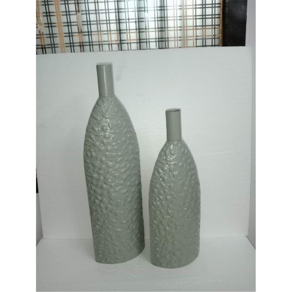 ชุดแจกันลายเท็กซ์เจอร์สีเทาสไตล์นอร์ดิก 2 ชิ้น | แจกันโลหะสไตล์มินิมอลสมัยใหม่ | ภาชนะลายดอกไม้เรขาคณิตสำหรับการจัดวางและตกแต่งบ้าน