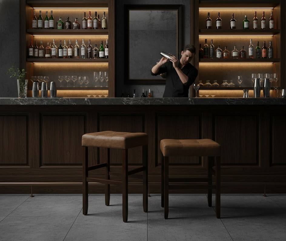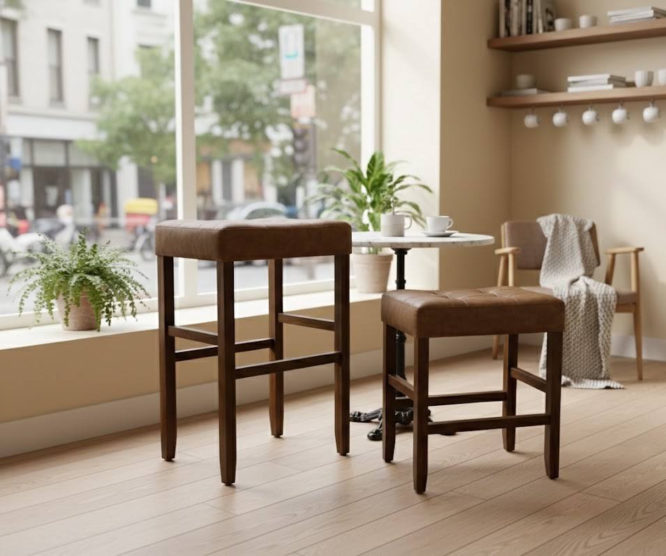 ชุดเก้าอี้บาร์และเคาน์เตอร์หนัง PU 2 ชิ้น ชุดเก้าอี้บาร์หุ้มหนัง PU แบบมีปุ่ม ชุดเก้าอี้บาร์หุ้มหนัง PU โครงไม้เนื้อแข็ง ชุดเก้าอี้บาร์และเคาน์เตอร์สูง