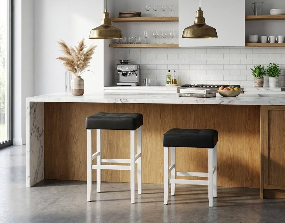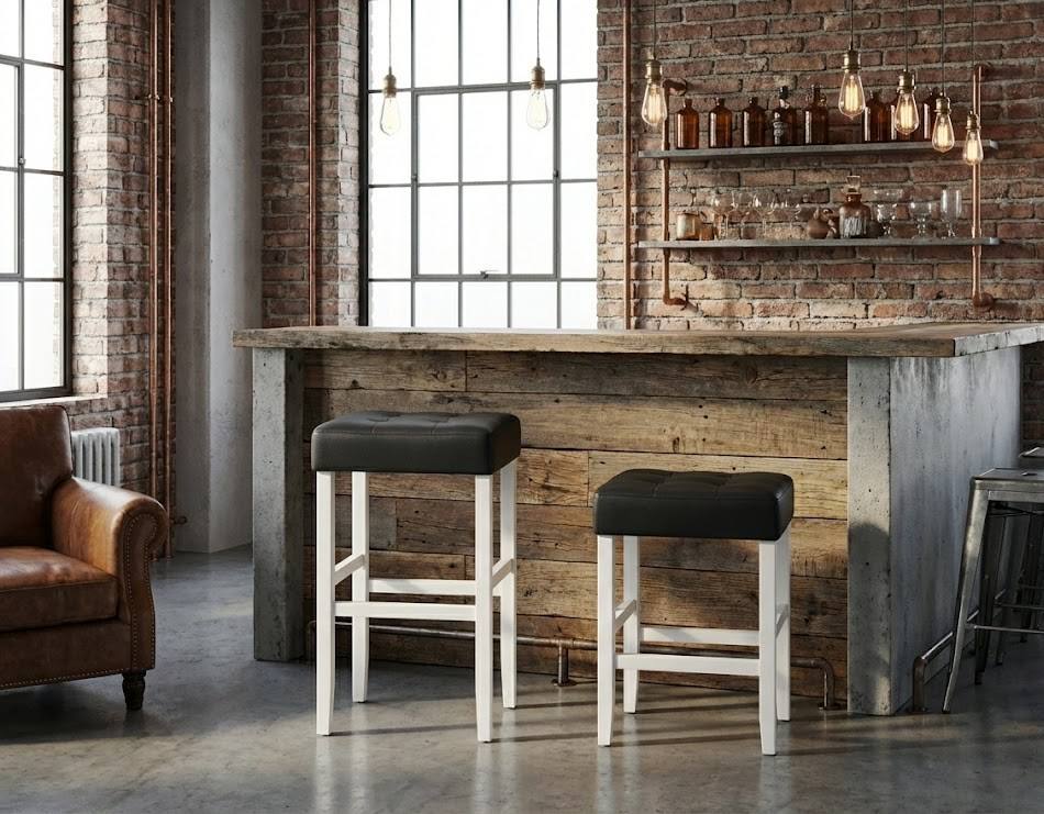 ชุดเก้าอี้บาร์และเคาน์เตอร์หนัง PU 2 ชิ้น ชุดเก้าอี้บาร์หุ้มหนัง PU แบบมีปุ่ม ชุดเก้าอี้บาร์หุ้มหนัง PU โครงไม้เนื้อแข็ง ชุดเก้าอี้บาร์และเคาน์เตอร์สูง