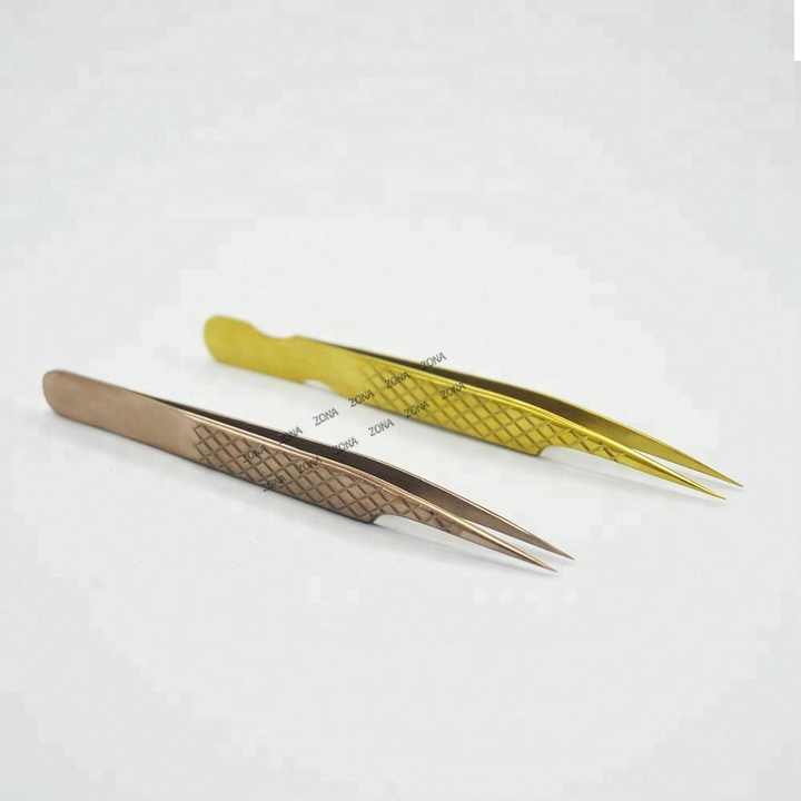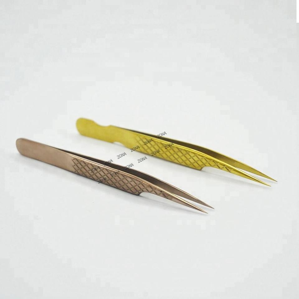 ชุดแหนบแยกขนตา2ชิ้นทำจากสเตนเลสสตีลปลายละเอียดสีทองและสีบรอนซ์สำหรับการต่อขนตา