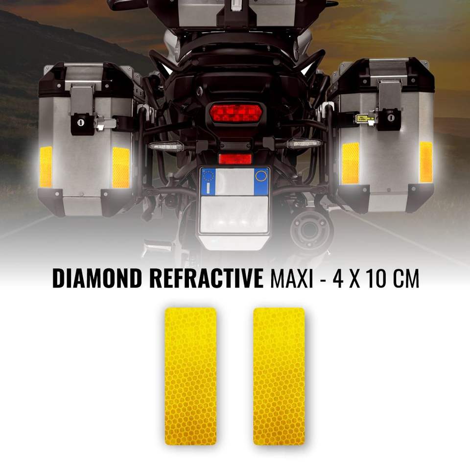 2-Piece Reflective Yellow Sport Diamonds Logo Stickers for Motorcycle & Truck Top Boxes 1-Year Safety Warning & Warranty