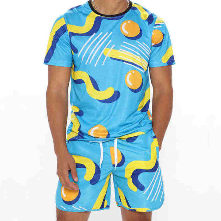 ชุดเสื้อผ้าแนวสตรีทสำหรับผู้ชายใส่กลางแจ้งเสื้อและกางเกงขาสั้นเรียบง่าย2ชิ้นสำหรับฤดูร้อน