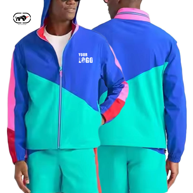 ชุดกางเกงขาสั้นและแจ็กเก็ต2ชิ้นสำหรับผู้ชายชุดเสื้อกันลมไนลอนโลโก้สำหรับวิ่งของผู้ชาย1ชุด