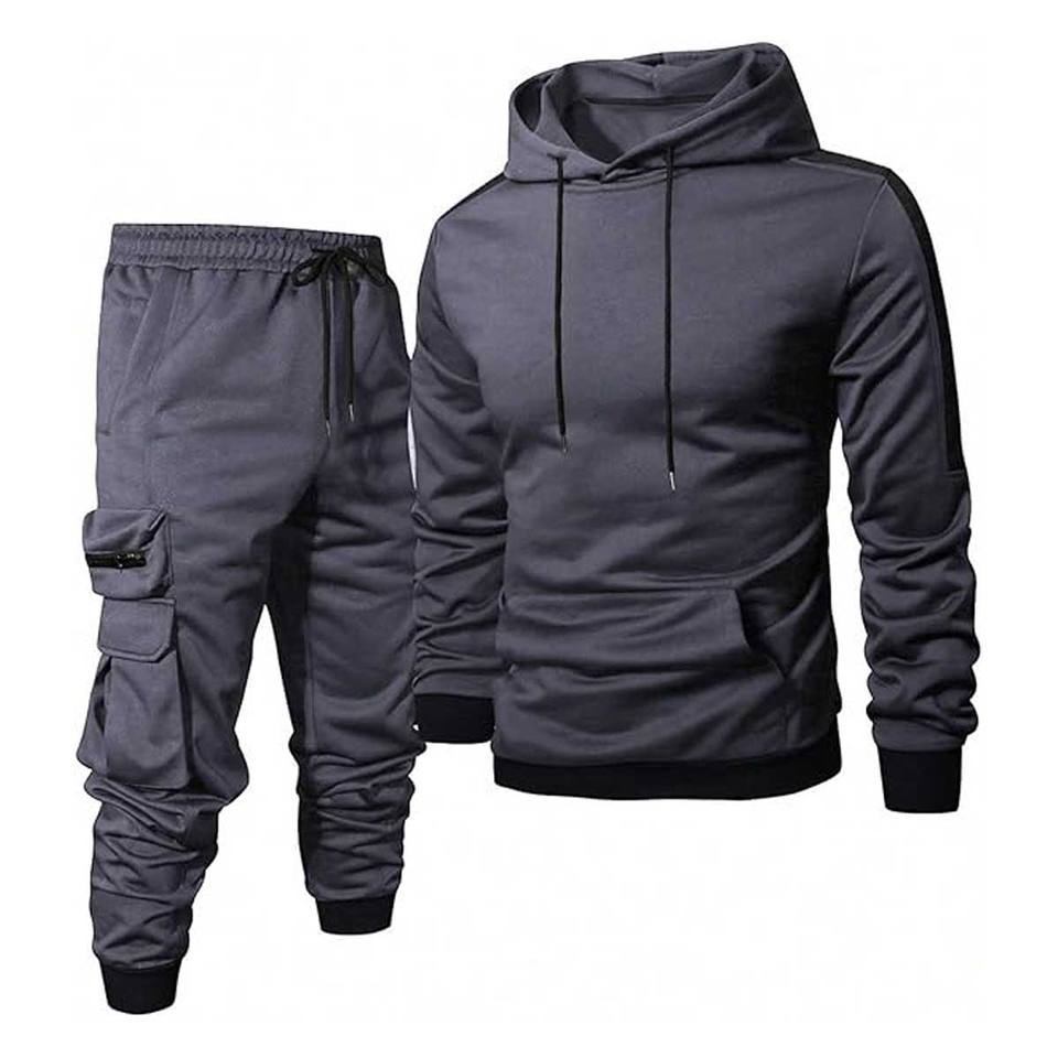 ชุดวอร์ม2ชิ้นสำหรับผู้ชายชุดวอร์มกีฬาแบบมีฮู้ดและกางเกงวิ่ง