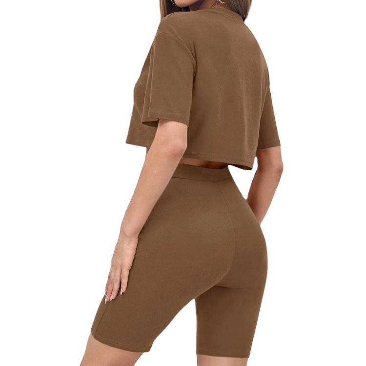 ชุดเสื้อครอปท็อปพิมพ์ลายสก็อตฤดูร้อนลำลองสำหรับผู้หญิง 2 ชิ้นและกางเกงขาสั้นเอวสูง
