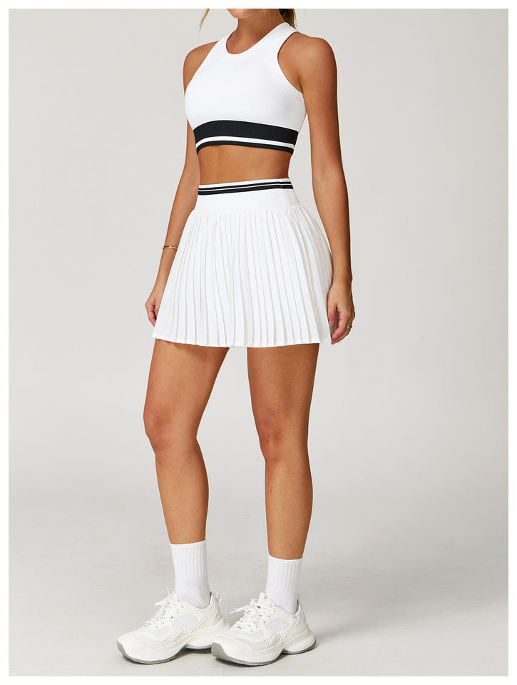 ชุดเทนนิสผู้หญิง 2 ชิ้น ชุดกระโปรงกางเกงออกกำลังกาย มีกระเป๋าใส่โทรศัพท์ได้ สวมใส่สบาย ผลิตจากโพลีเอสเตอร์ 100% ไซส์พลัส