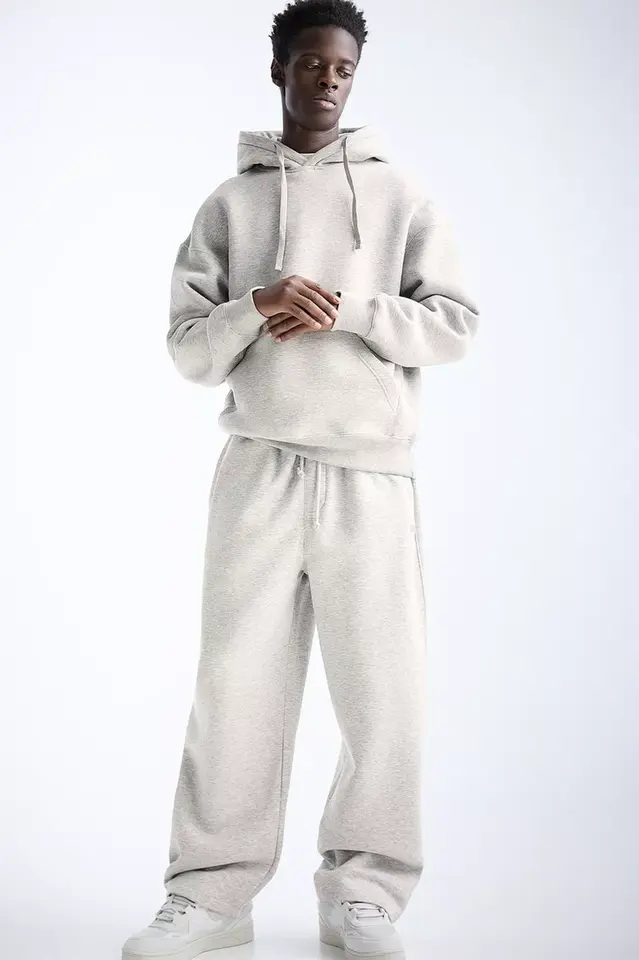 ชุดเซ็ตเสื้อฮู้ดดี้ทรงหลวมใหญ่โอเวอร์ไซส์เนื้อผ้าหนา 2 ชิ้น และกางเกงจ็อกเกอร์ 100% ผ้าฝ้าย ชุดวอร์มลำลองสำหรับผู้ชาย