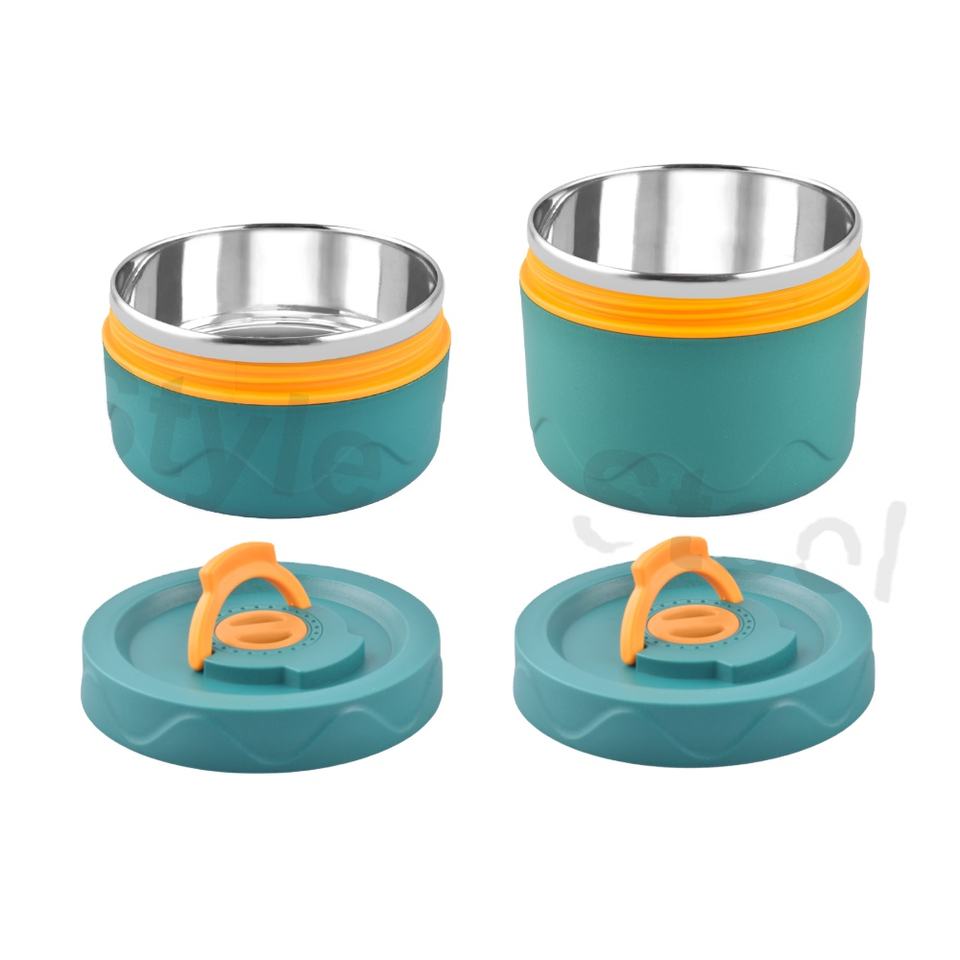 ชุดกล่องใส่อาหาร2ชิ้นสำหรับเด็กนักเรียนชุดกล่องอาหารกลางวันสแตนเลสแบบทิฟฟินพกพาได้