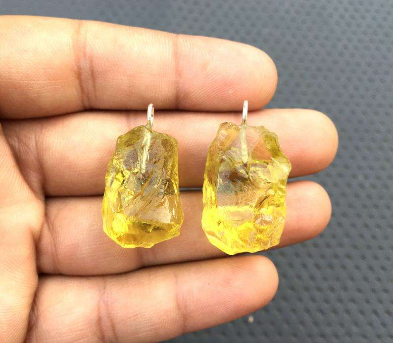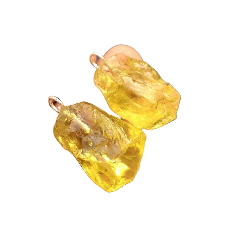 2ชิ้นอัญมณีควอตซ์มะนาวธรรมชาติจี้เสน่ห์หยาบที่ไม่ผ่านการบำบัดทำด้วยมือ92.5สเตอร์ลิงเครื่องประดับดิบขายส่ง
