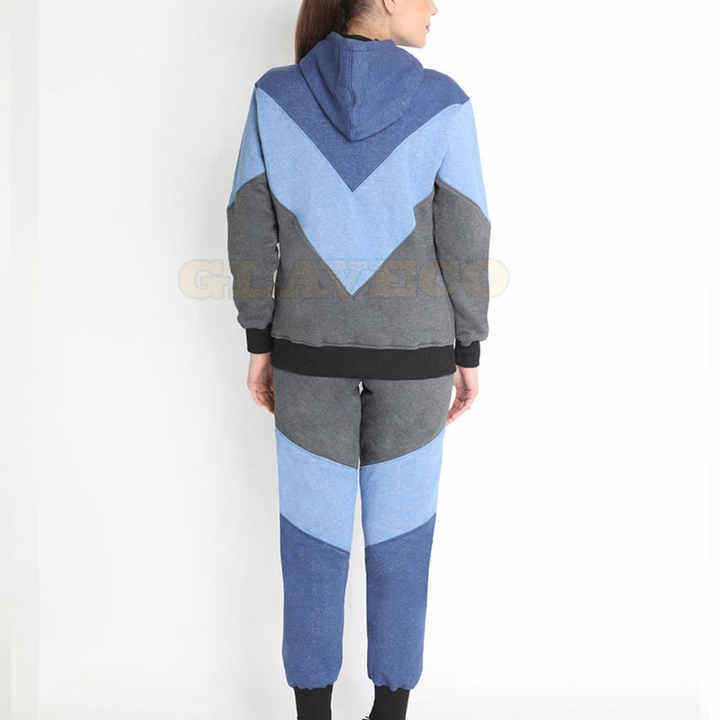 ชุดออกกำลังกาย2ชิ้นชุดออกกำลังกายกางเกงมีฮู้ดสีทึบสำหรับผู้หญิงใส่เล่นกีฬาลำลองโลโก้ได้ตามต้องการ